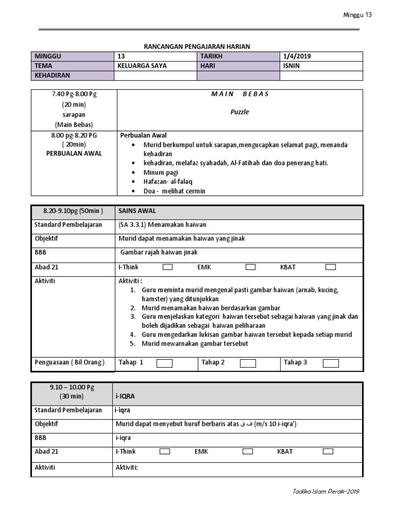 Adakah anda suka PEMBELAJARAN ABAD KE 21 PENDIDIKAN ISLAM. Contoh RPH BM 2020 PDF. Disini kami serba sedikit ingin berkongsi tentang contoh penulisan Rancangan Pengajaran Harian Pendidikan Islam.